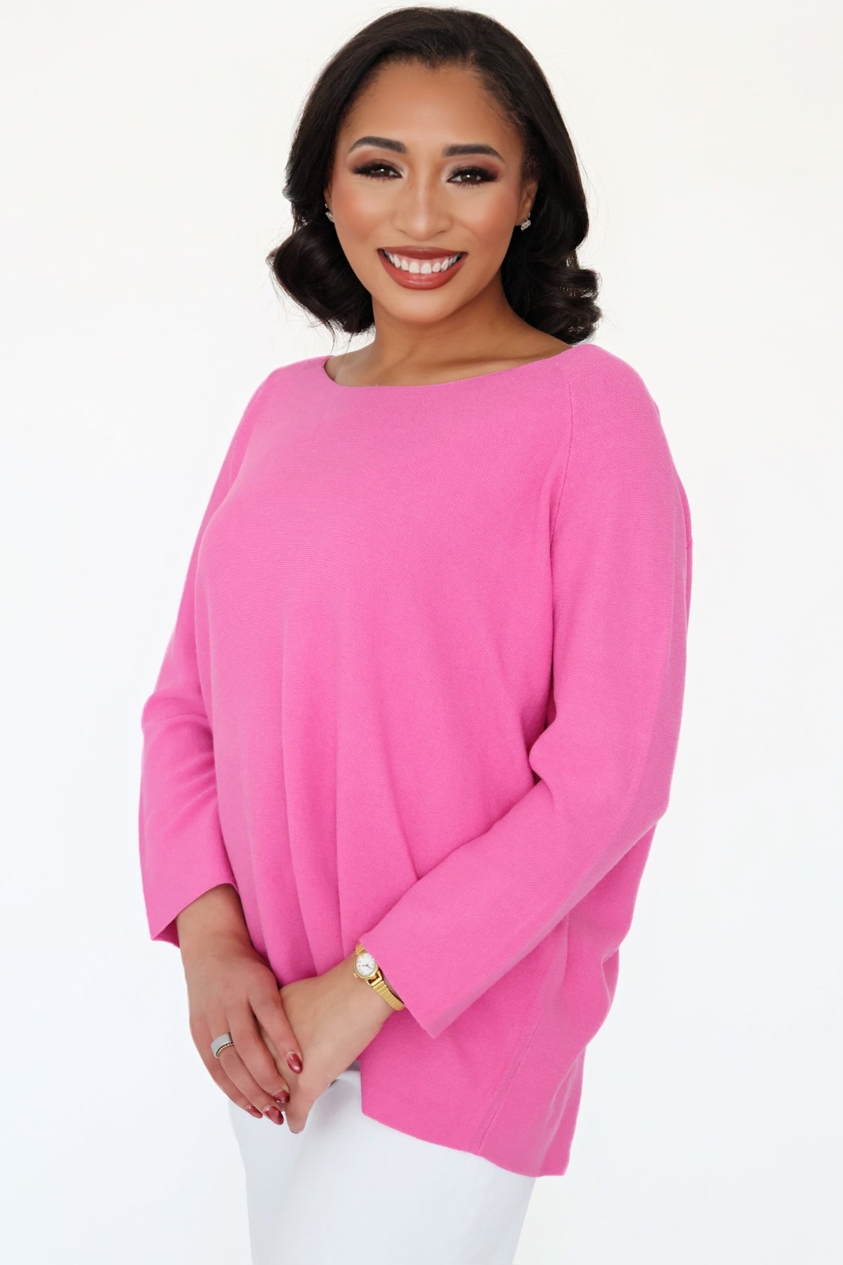 - Round neck 3/4 sleeve knit sweater top