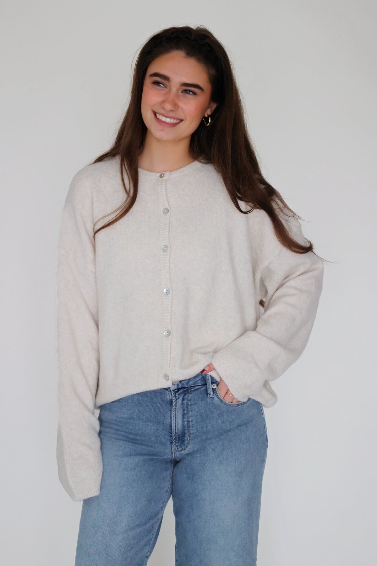 - Long sleeve crew neck cardigan