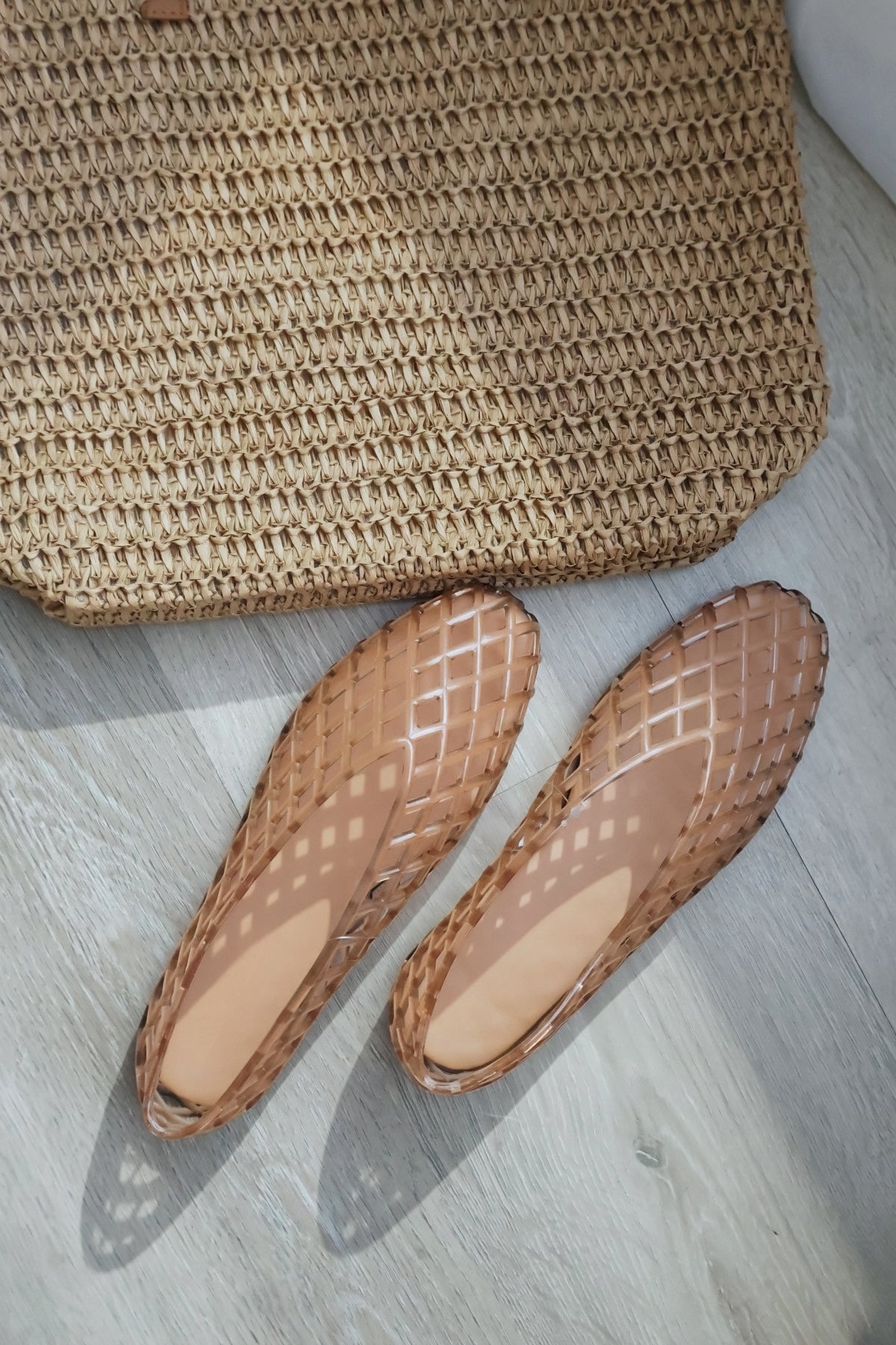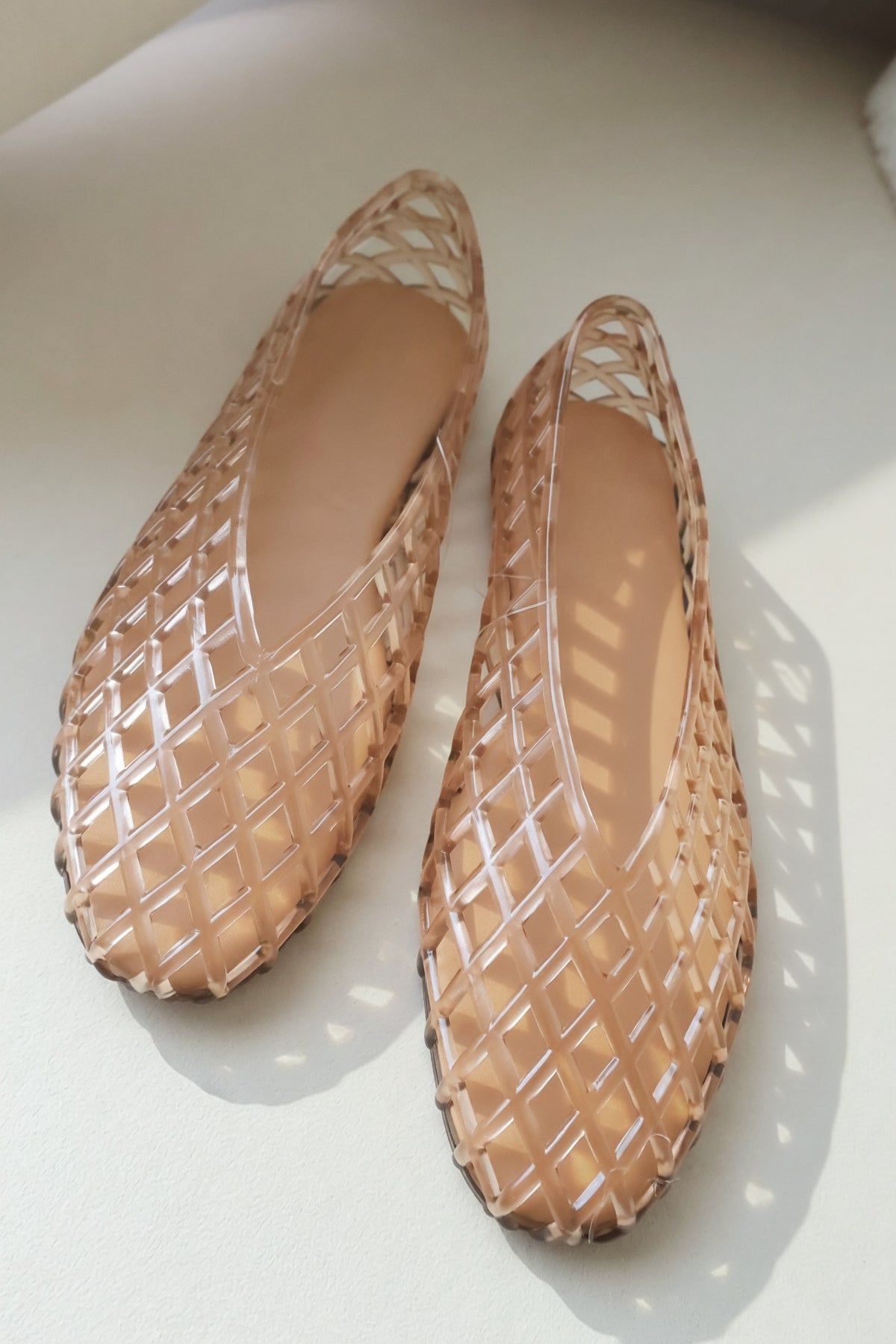 Breathable mesh jelly slip-on flats with a flexible PVC construction