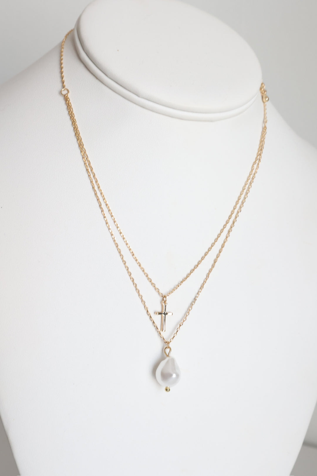 Pearl And Cross Charm Necklace