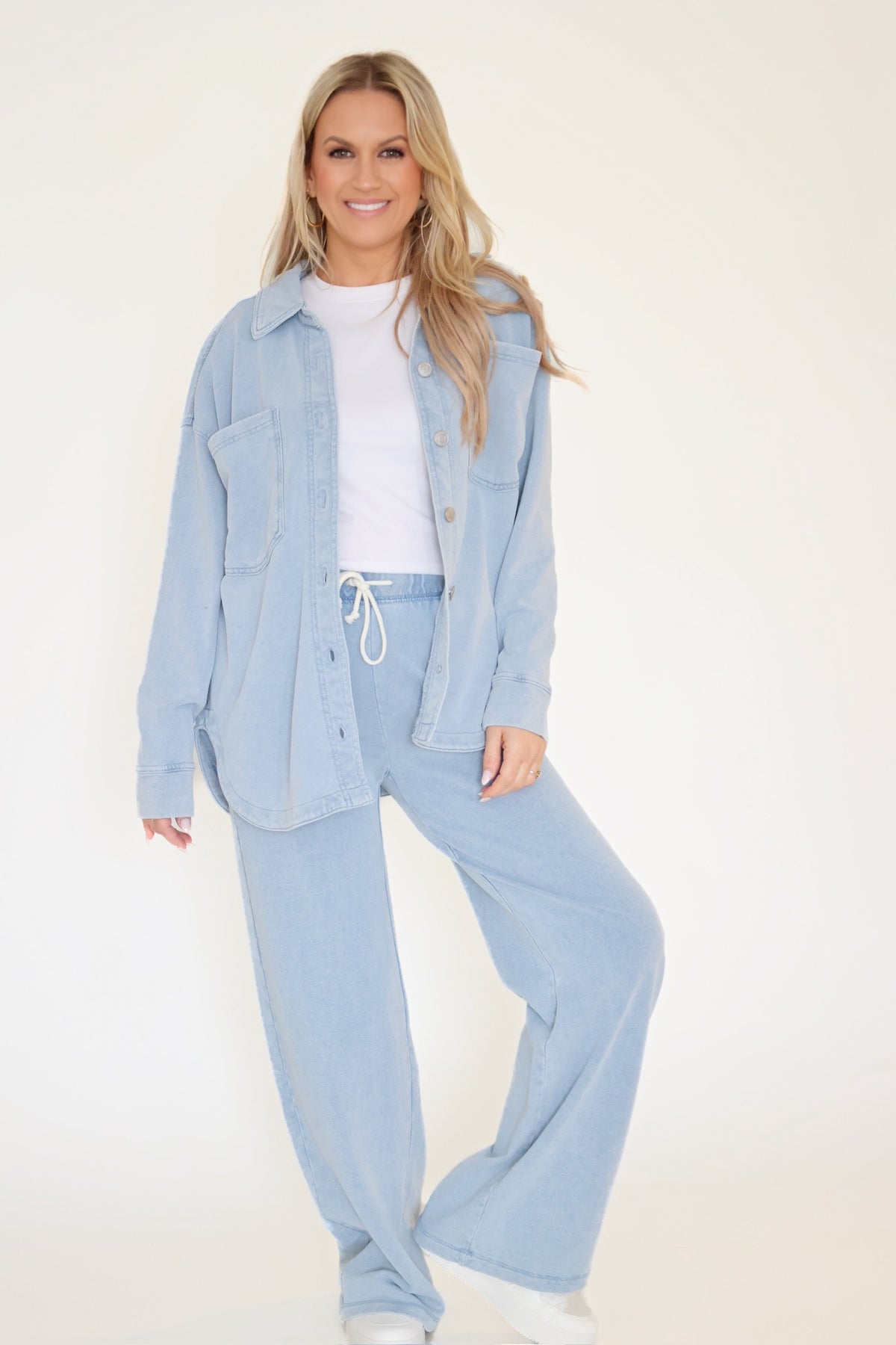 Our All Day jacket is a best seller, especially in our knit denim french terry fabric. This relaxed shirt jacket can be worn open or buttoned for a versatile layer you'll want to live in all year.