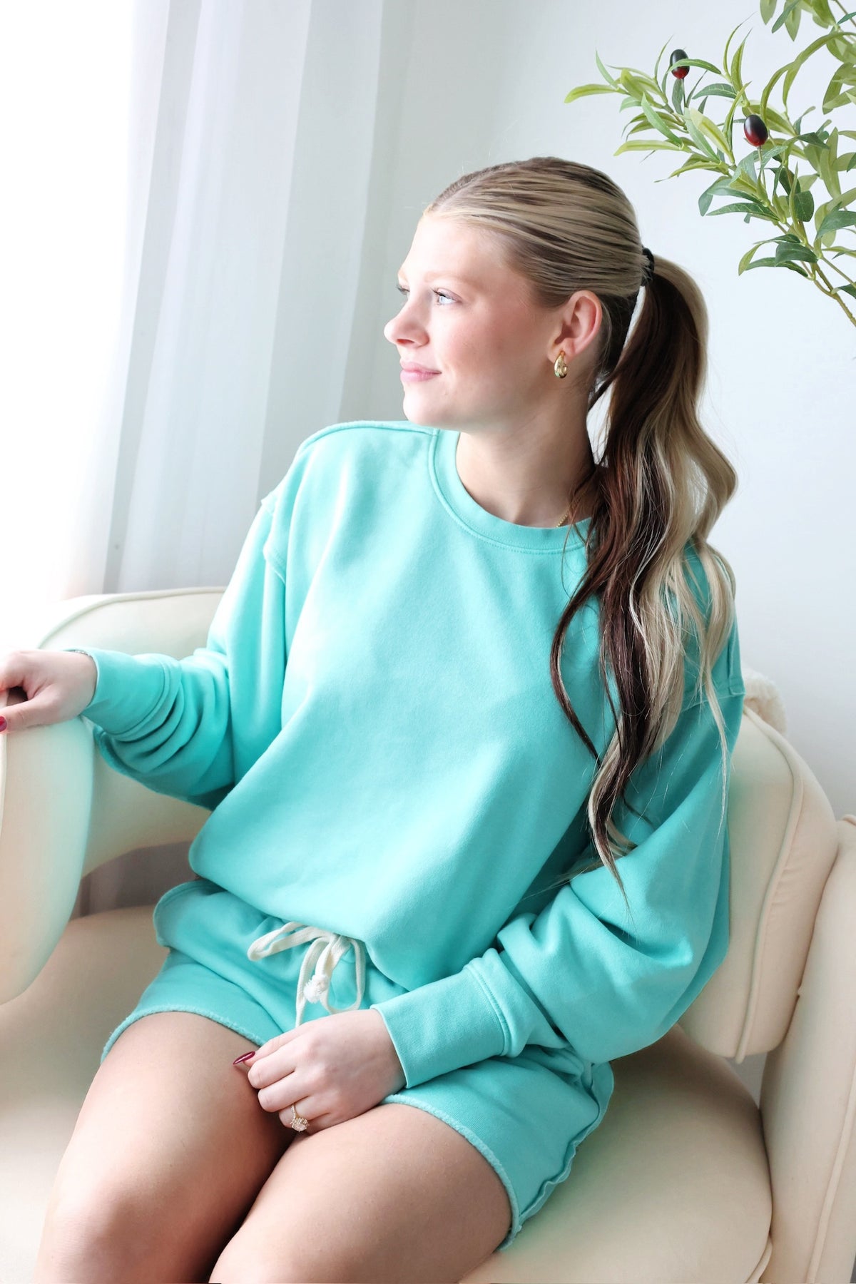 This essential sweatshirt is crafted from soft, burnout washed french terry, providing a comfortable, worn-in feel. It features a classic crew neckline, long sleeves finished with ribbed cuffs, and exposed raw edge seams for an artisinal, deconstructed look. Pair with matching joggers or shorts for a totally cohesive and laid-back look.