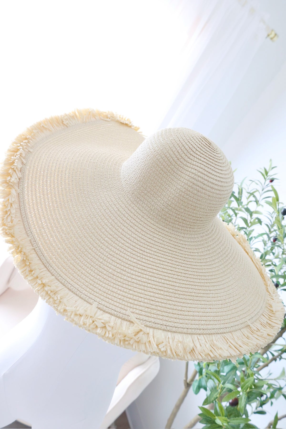 A trip down Lake Shore in our Lake Shore Drive Wide Fringe Sun Hat is a must for the summer! This adjustable and packable wide brim sunhat features a fringe trim for elevated detailing. Made from 100% paper, this hat will be your new summer go-to!
