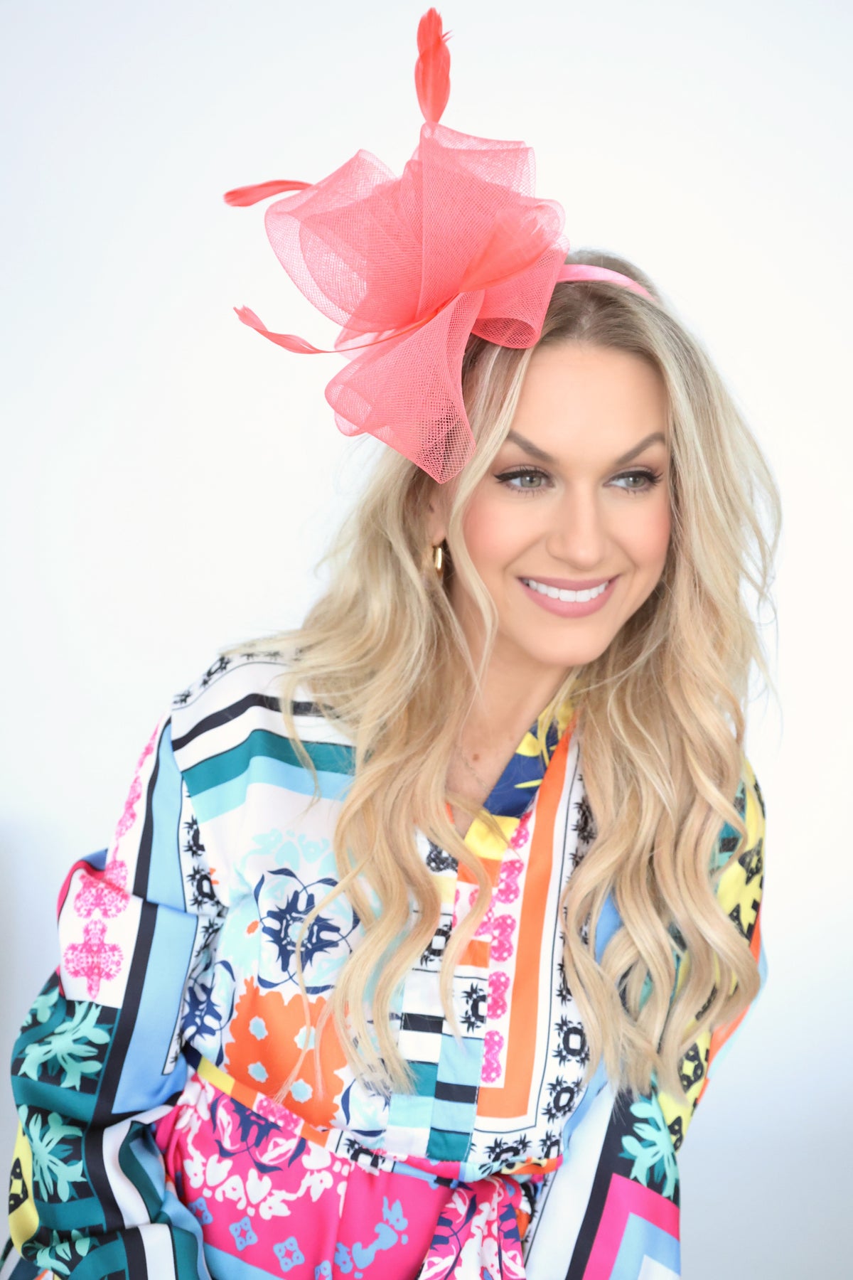 - Mounted on a headband for occasion styling